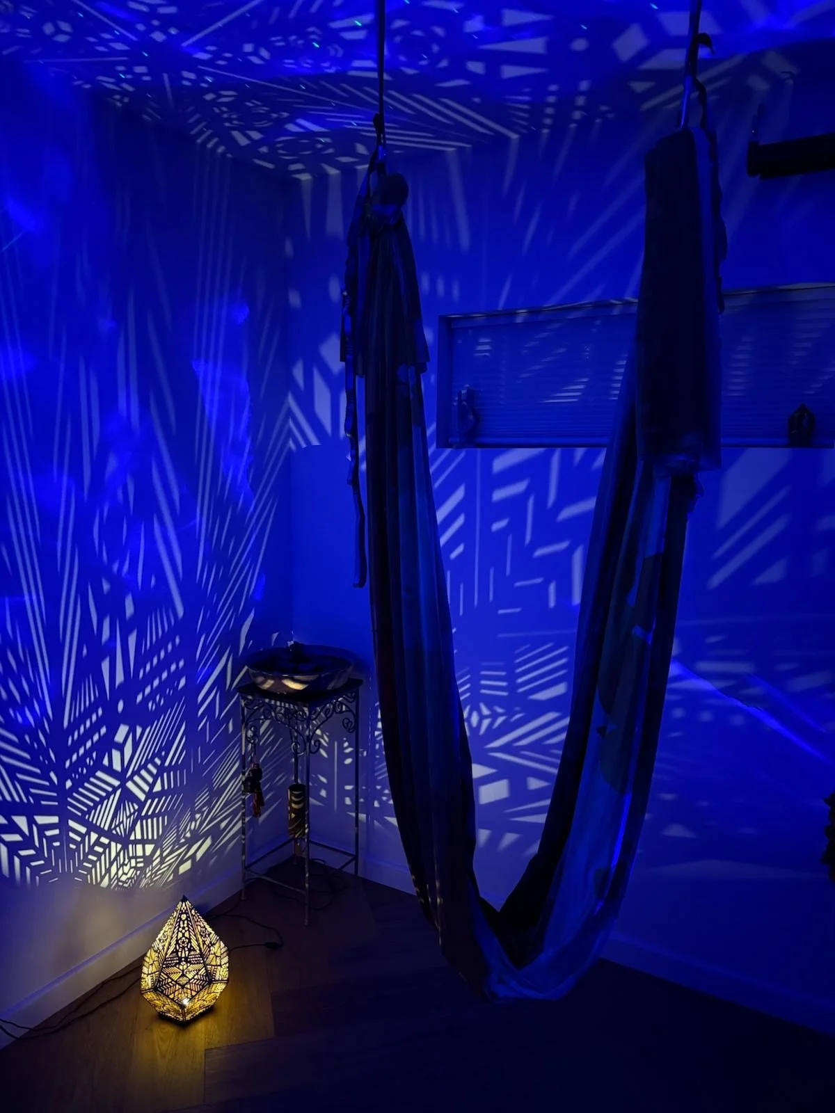 ✨ A celestial evening of intention, integration, and deep restoration in aerial yoga silks ✨